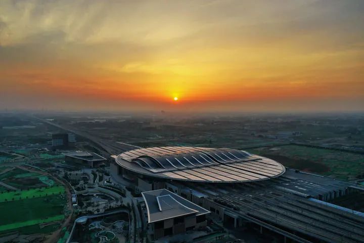 这是京雄城际铁路雄安站(7月1日摄,无人机照片)。新华社记者 牟宇 摄