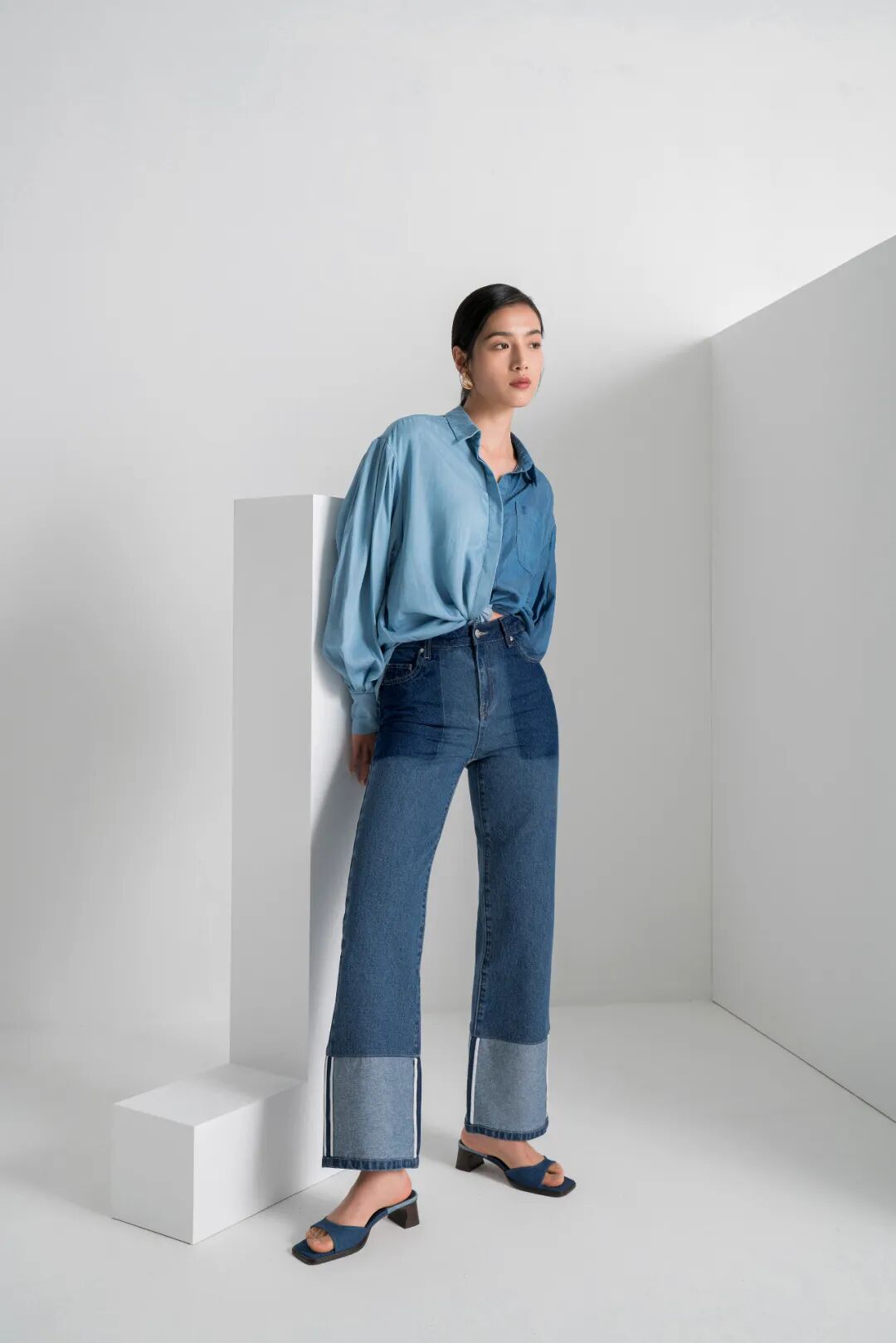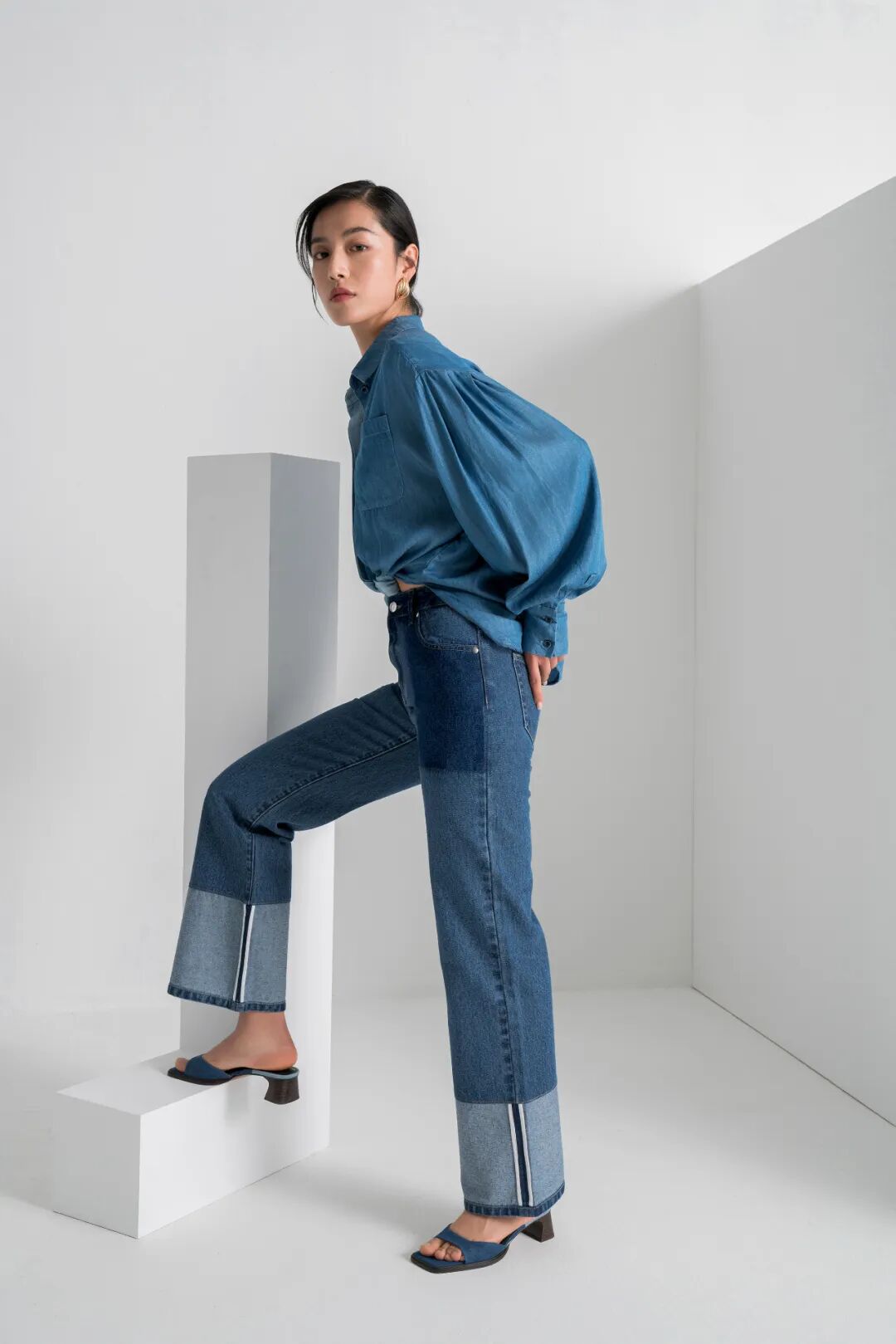 如拼色牛仔裤在细节处稍作改变,便像是换了一种态度,显瘦又保留了牛仔的随性。