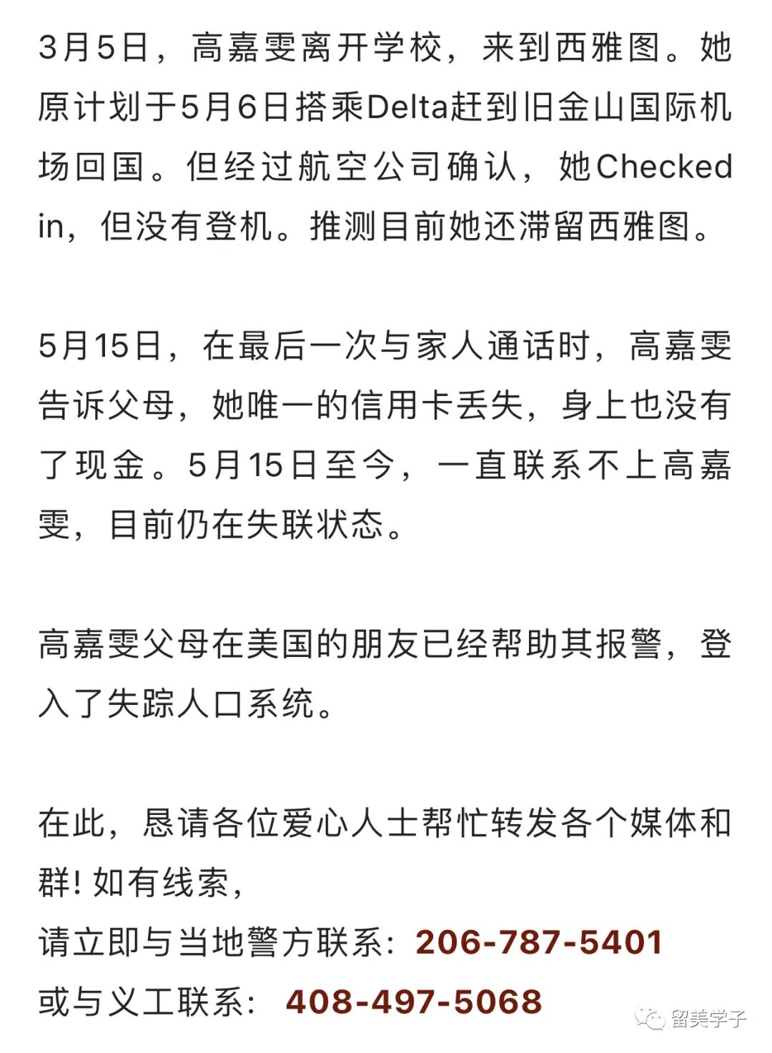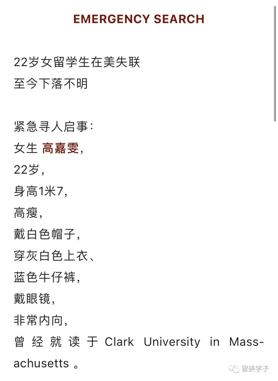 本文介绍了急寻人: 女留学生在美失联,对大家解决问题具有一定的参考价值,需要的朋友们下面随着小编来一起学习吧!
