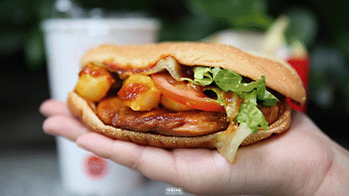 “把年糕夹在汉堡里“