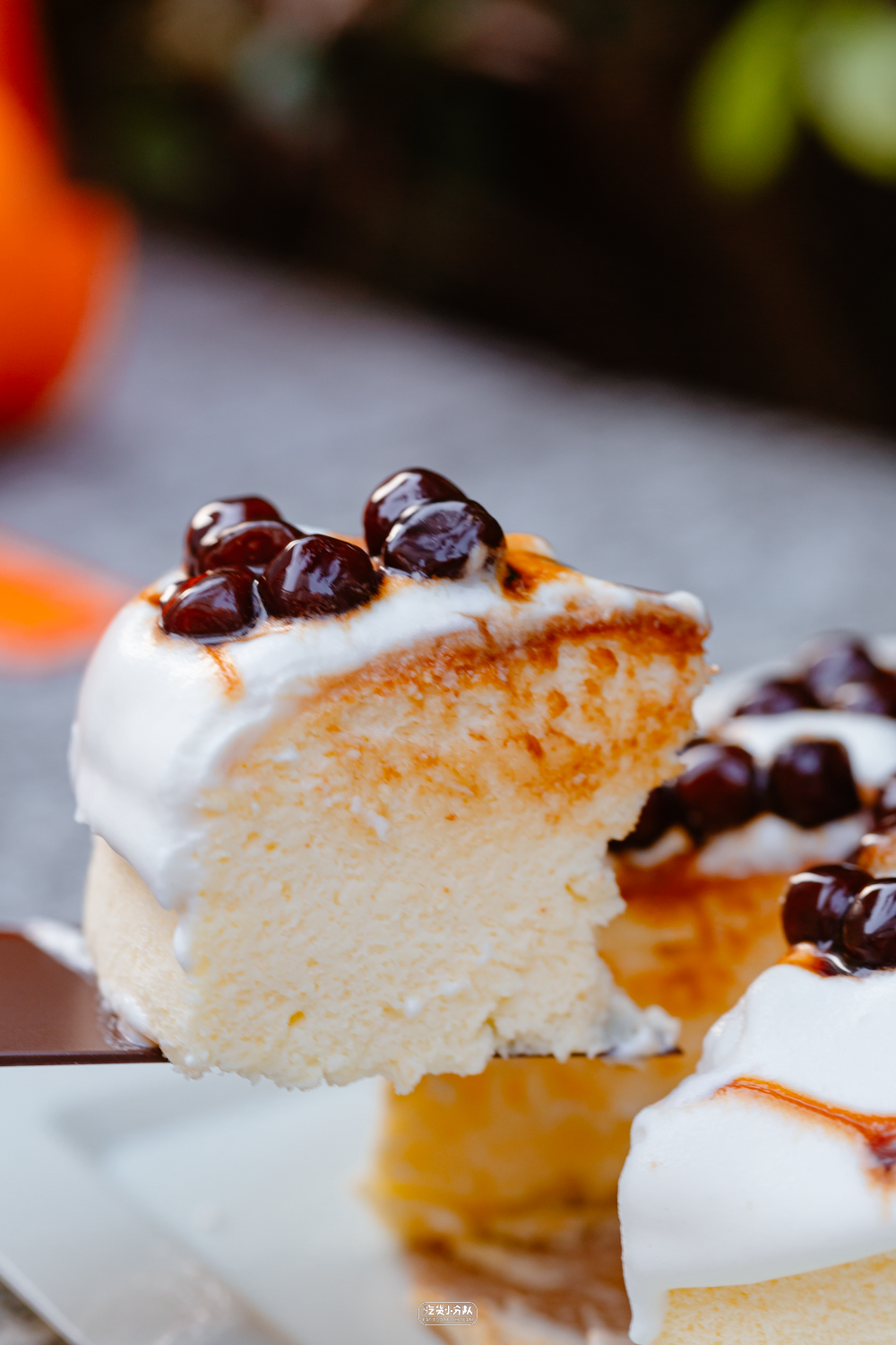 蛋糕上有黑糖珍珠纹理烫