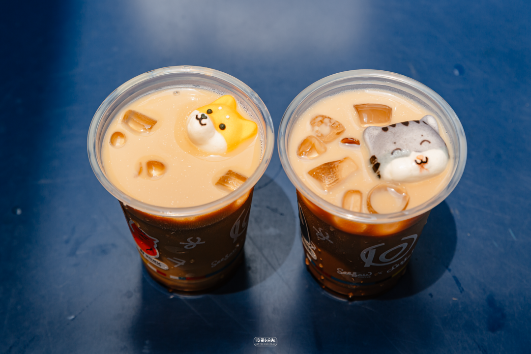 咖啡里面长猫猫和柴犬啦~Seesaw和植物标签的联名特调,醇香SOE、燕麦奶分别配上焦糖酱和巧克力酱,就是柴犬焦糖燕麦拿铁和虎斑巧巧燕麦拿铁。柴犬咖啡浴其实是宠物棉花糖哦,焦糖风味,像柴柴一样治愈力满分。