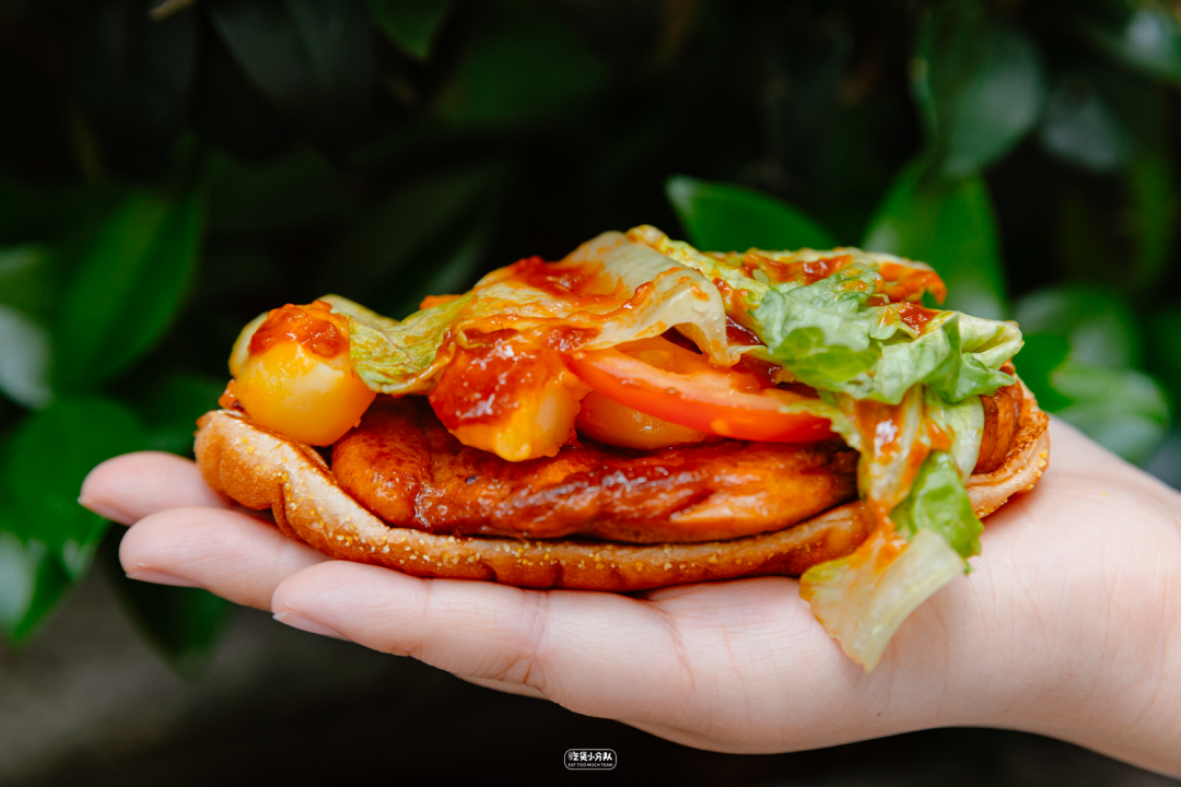 延边风味芝芝板烧鸡腿堡,朝鲜族辣酱和芝士年糕,这个年糕值得一说,非常软糯,新品上线当天菠萝乌龙就立刻去尝了,比经典的板烧鸡腿多了些微微的辣味,喜欢尝新的可以试一试。