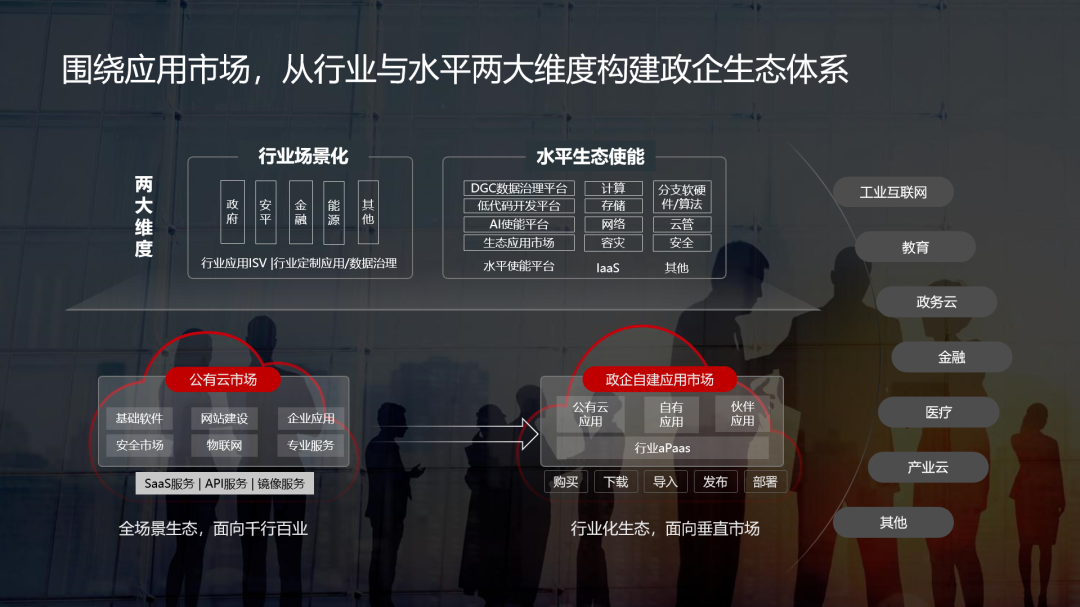 一部分云转型较早、较深的头部企业,积累了丰富的运维、运营和服务实践经验和成熟的应用生态,我们正在与这些客户一起构建行业云,探索数字化服务新模式,通过对外运营实现能力外溢,赋能行业。