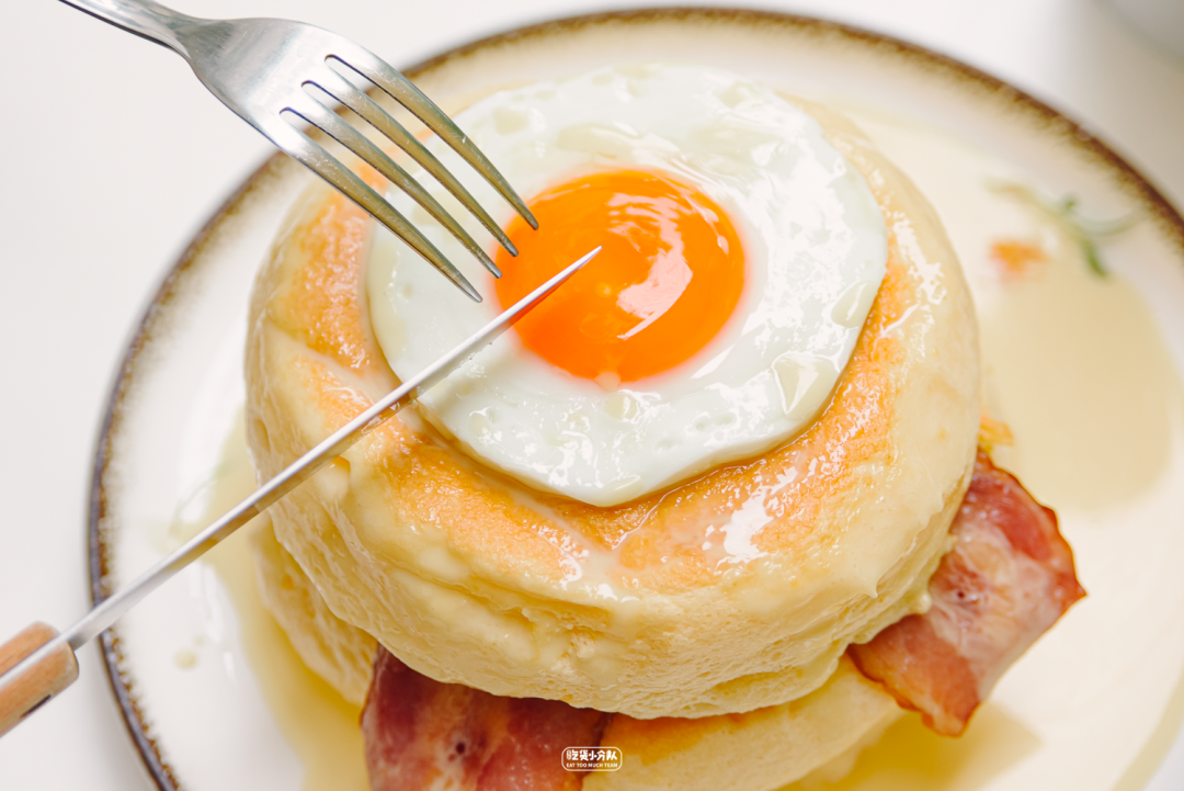 招牌的培根鸡蛋舒芙蕾,流心蛋配火腿和舒芙蕾,现做的舒芙蕾格外松软,鸡蛋是可以生食的日本蘭妃鸡蛋,虽然是甜咸搭配,吃着却不会让人觉得奇怪。