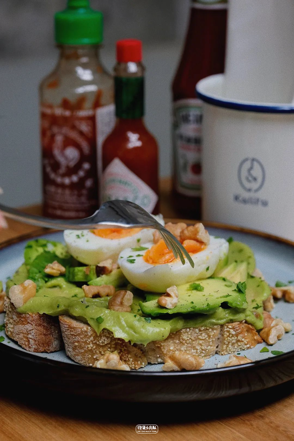 牛油果煮蛋吐司也很有人气,一划拉蛋液就四溢出来,是最早让水波蛋走红魔都的菜品之一。