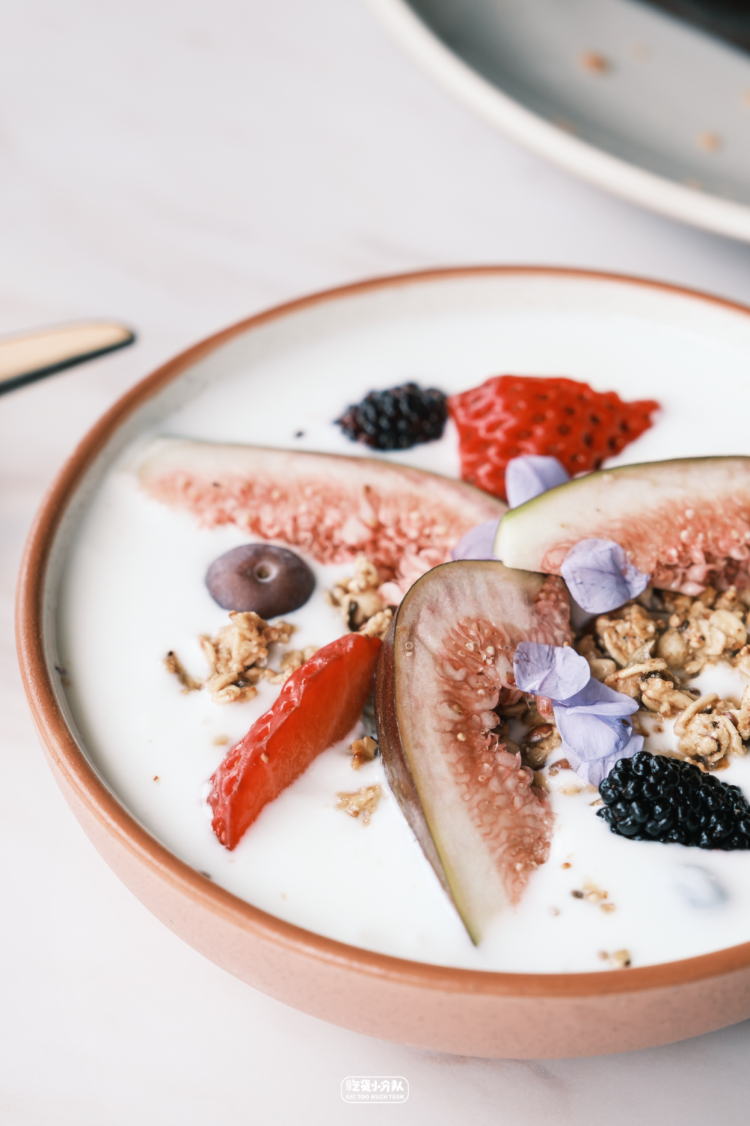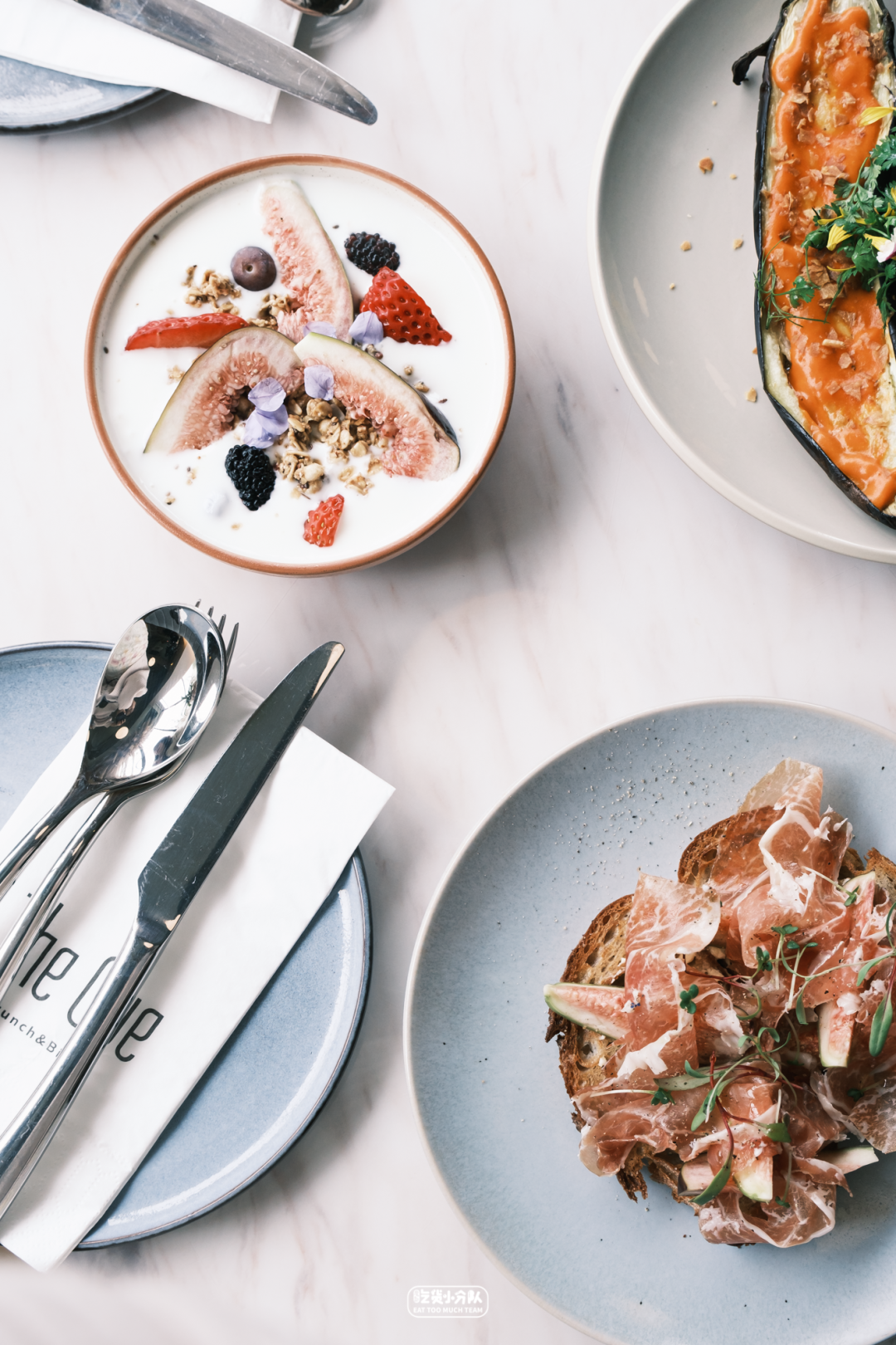 两种opentoast拼配,无花果火腿和慢煮牛舌,都是他家招牌,牛舌软嫩,吐司焦脆。坚果燕麦酸奶碗,希腊酸奶打底,搭配时令水果和燕麦,非常健康。