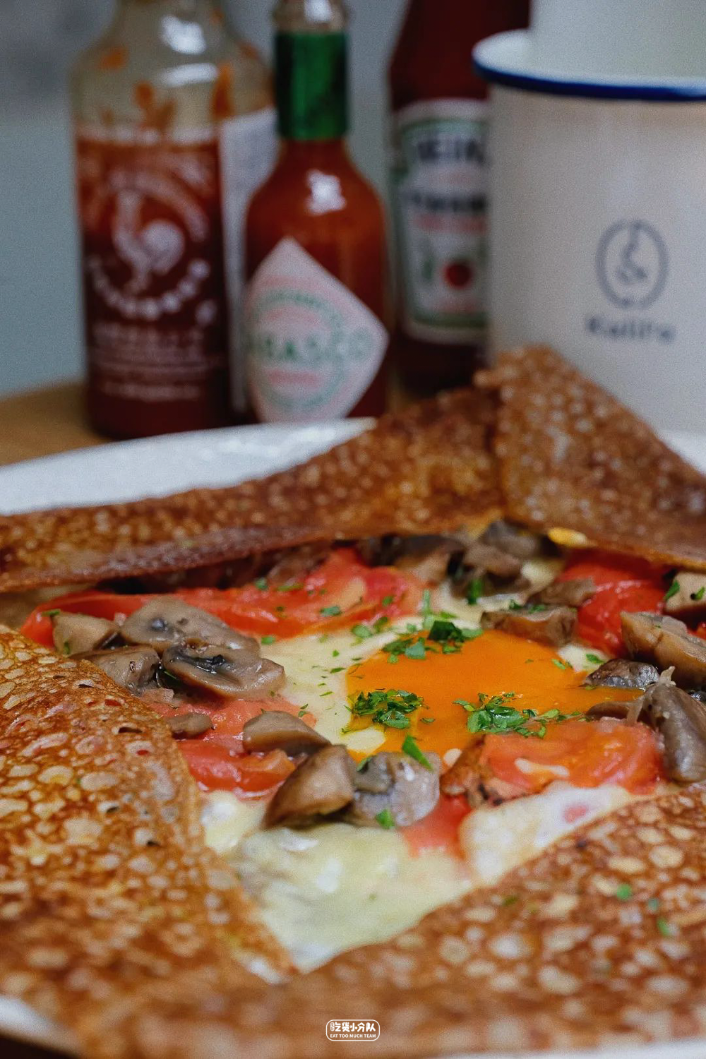 最招牌的鸡蛋蘑菇熏肉荞麦可丽饼,饼底薄而脆装满芝士等料,是最正宗的法式做法。