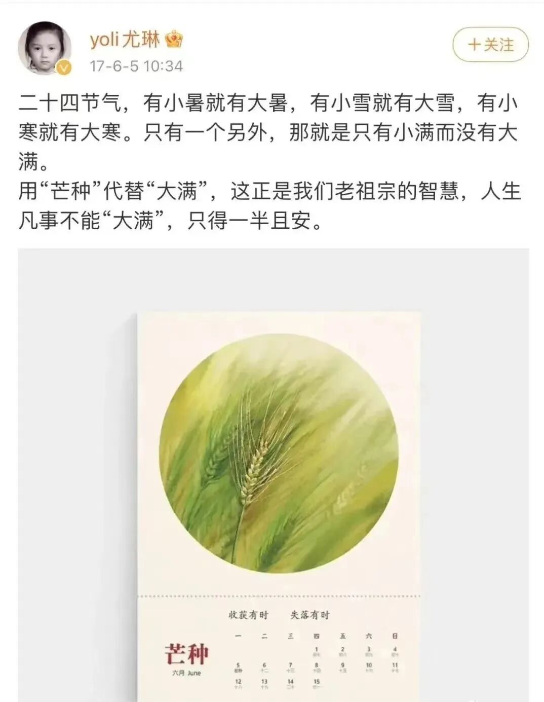 其中以“大小”命名的几个节气,必定都是小大相连,有小必有大。例如小暑后跟着大暑,小雪后就是大雪,唯独小满是个例外,后面并不是大满,而是芒种。