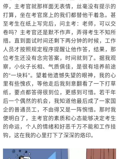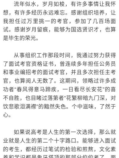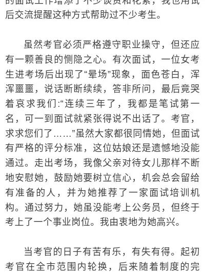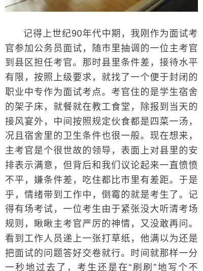 夜读丨一位公务员面试官的难忘经历 发布时间:2022-06-14 19:50:25 山东政事 本文介绍了夜读丨一位公务员面试官的难忘经历,对大家解决问题具有一定的参考价值,需要的朋友们下面随着小编来一起学习吧! 流年匆匆李剑来源:鲁中晨报 这篇关于夜读丨一位公务员面试官的难忘经历的文章就介绍到这了,希望我们推荐的答案对大家有所帮助,也希望大家多多支持!