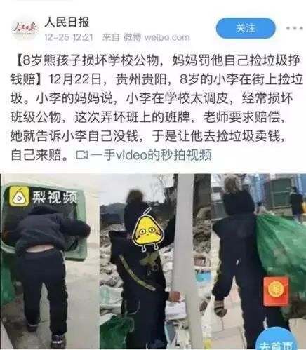 “不要以为只有你们在教训孩子、命令孩子时才是教育,在生活的每时每刻,甚至在你们不在场的时候,都是教育!”父母是孩子的一面镜子,想要孩子长大后有出息,父母必须以身作则,做好榜样。前段时间,一则“8岁熊孩子,损坏学校公物,妈妈罚他自己捡垃圾挣钱赔”的新闻火了。