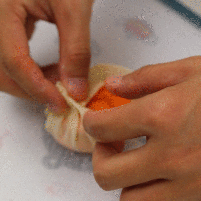 像包包子一样收口捏紧,收口多余的小尾巴可以掐掉。