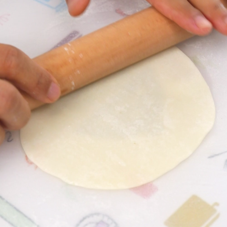 把饺子皮擀得又大又薄。
