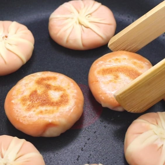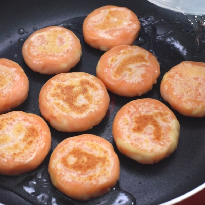 煎到正面金黄,然后翻面煎底部。