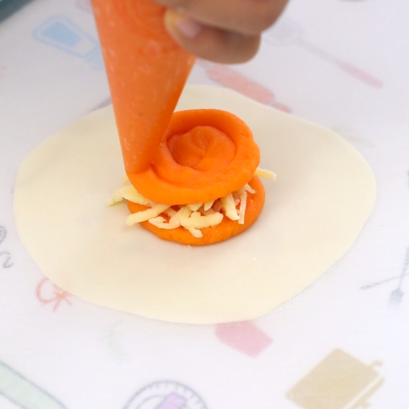 表面再挤一层红薯泥。