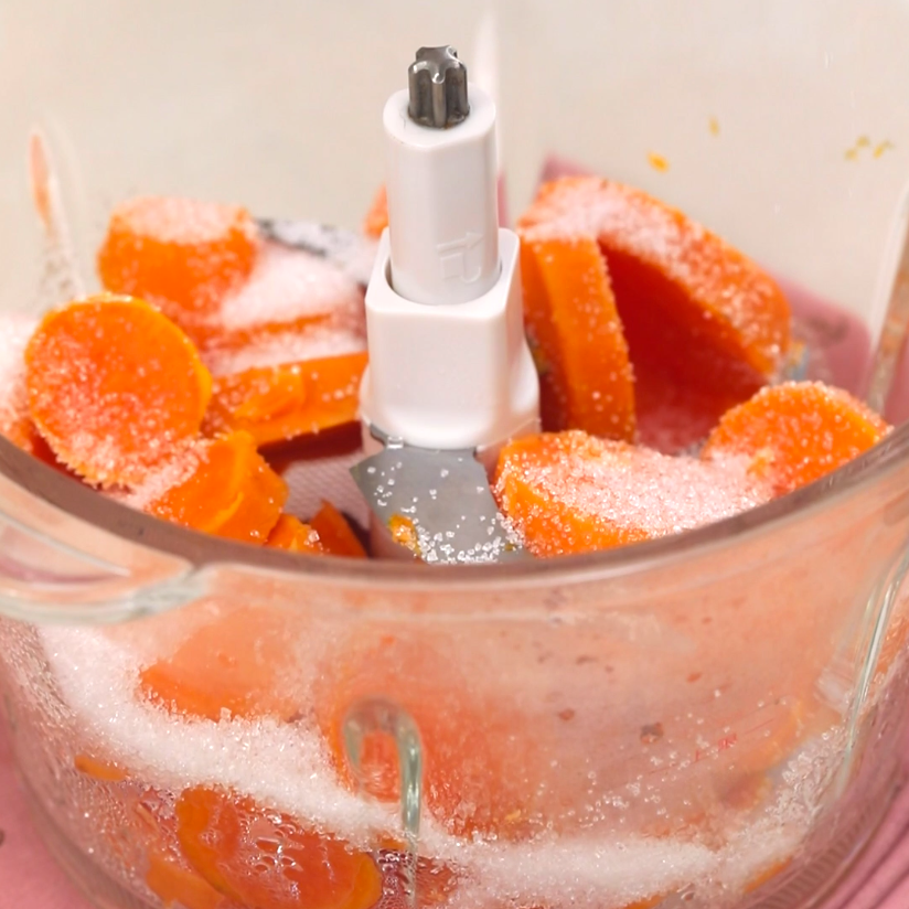 用料理机把红薯打成泥,没有料理机,就用叉子或者擀面杖碾压,如果红薯够粉,又蒸透了,捣成泥是很轻松的。