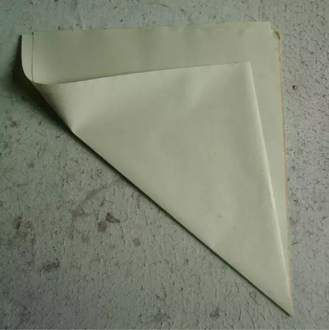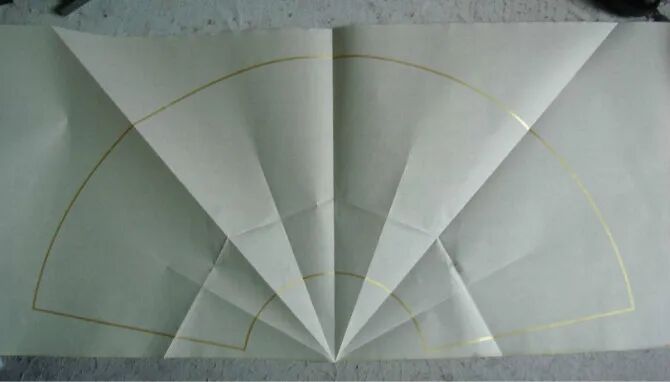 第二步: 将纸按扇面的边沿线再次对折(如图所示)