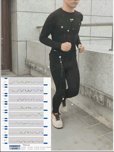近期,研究团队与北京理工大学宋维涛教授的合作研究成果——一种可用于人体健康监测的柔性纤维应变传感器( Adv. Mater., 2022, 2107511)将实现上述可能向前推动了一大步。研发团队将高性能纤维应变传感器植入到衣服中,研制了柔性可穿戴智能健康监测系统,该智能电子服装可实现对身体震颤、脉搏、呼吸、手势及6种人体运动姿态的实时监测。