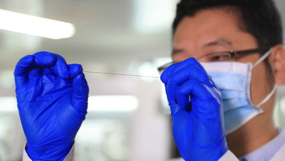 “尽管它只有1/10根头发丝粗细却可以轻易提起10g重的砝码,也可以准确检测同一张桌子上掉落绣花针产生的微弱振动。”王学文教授介绍。
