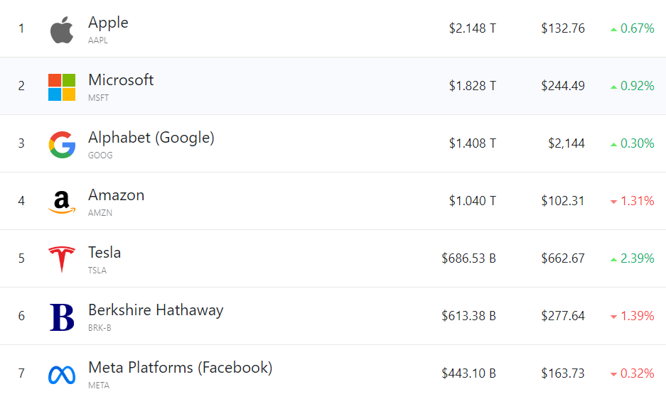 大型科技股涨跌不一,(按市值排列)苹果涨0.67%,微软涨0.92%,谷歌涨0.30%,亚马逊跌1.31%,Meta跌0.32%。