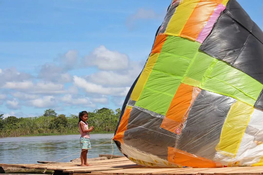 当地艺术家 Helga Elsner Torres 和 Ramiro Wong ,与最近的Museo Aero Solar 社区取得联系,和全村人利用废弃的塑料袋一起制作了巨大空中雕塑,引起公众注意,并在上面记录了倾倒垃圾对生态系统及生活造成的巨大危害。
