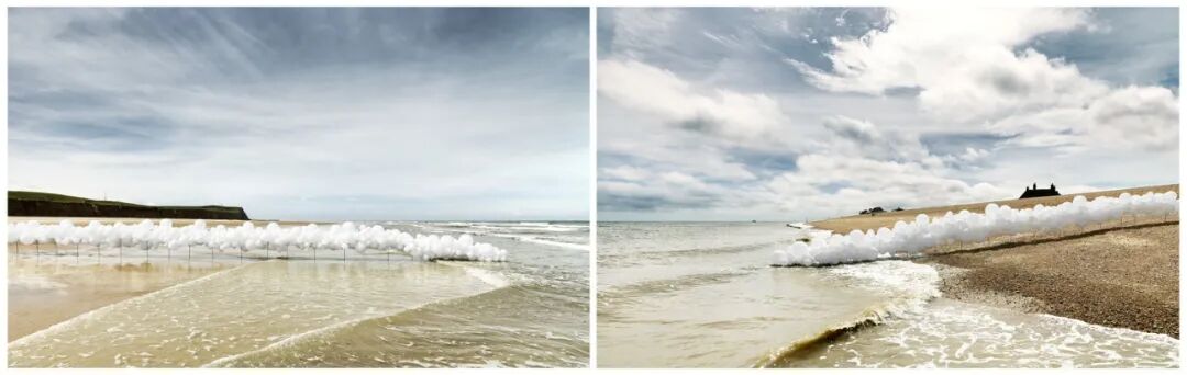 白色气球充满梦幻般的张力,强烈的视觉记忆让大众印象深刻,高对比的场景更是探讨了人与自然的复杂关系。