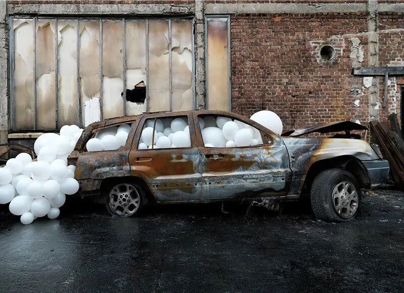 森林、旧车、老屋……汽球入侵日常的每个角落,Charles Pétillon表示自己的作品是一种比喻,我们看待周遭而被忽略的事物。