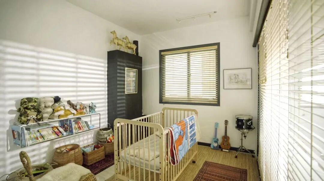 儿子降临后,原本空置的一小块地方,被隔成了儿童房。但在小朋友眼里,乐园无处不在,厨房、阳台、客厅甚至厕所。夫妻俩将部分物品和艺术作品挪去了不远处的工作室,给孩子腾出更多的空间。