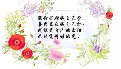 [1]人,不怕渺小,只怕卑微,我们既要学会珍惜生命,又要学会欣赏生命。心情是一种永恒,它相依相伴,一边让我们受伤,一边让我们学会坚强;生命,更是一种永恒,它无卑无微,在苦难时绽放美丽,在历练中彰显其存在其意义。 [2]时光清浅,岁月安暖。我只愿心素如莲,人淡如菊。不以己悲,不以物喜。坐在阡陌红尘里,一手烟火,一手诗意,双手合十,做 快乐 的自己。择一江南古镇诗意的栖居,春来,看绿意葱茏;夏日,赏花红叶碧;秋至,用果香熏染自己;冬季,和素雪、梅花一起在时光里旖旎。 [3]如果有一天,你要离开我,我不会留你,我知道你有你的理由;如果有一天,你说还爱我,我会告诉你,其实我一直等你;如果有一天,我们擦肩而过,我会停住脚步,凝视远去的背影,告诉自己那个人我曾经爱过。或许一生可以爱很多次,然而总有一个人可以让我们笑得最灿烂,哭得最透彻,想得最深切。