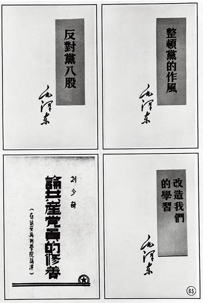整风运动中,毛泽东先后作了《改造我们的学习》《整顿党的作风》《反对党八股》等报告和讲演,刘少奇的《论共产党员的修养》《论党内斗争》等也被列为整风学习重要文件