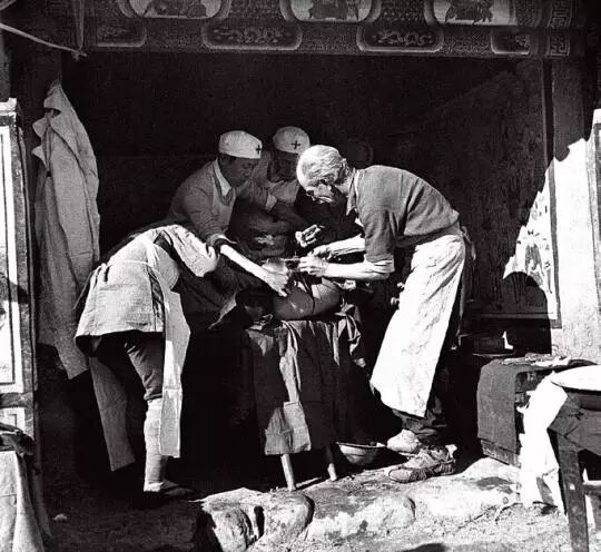 1939年10月24日,白求恩在晋察冀边区涞源县临时手术室里为伤员做手术