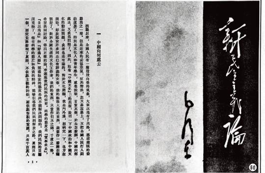 右图,在延安出版的《新民主主义论》单行本封面;左图,《新民主主义论》的开头部分