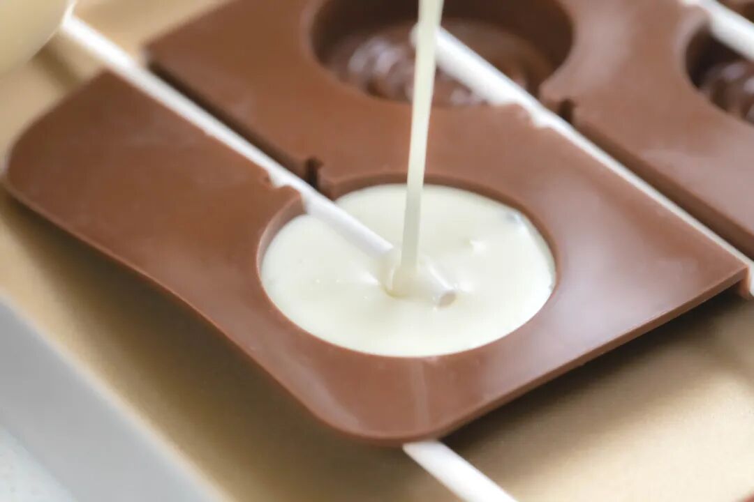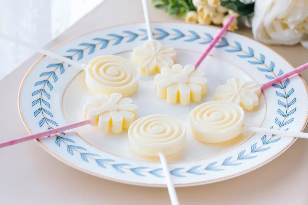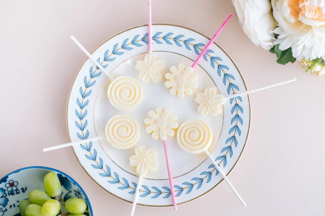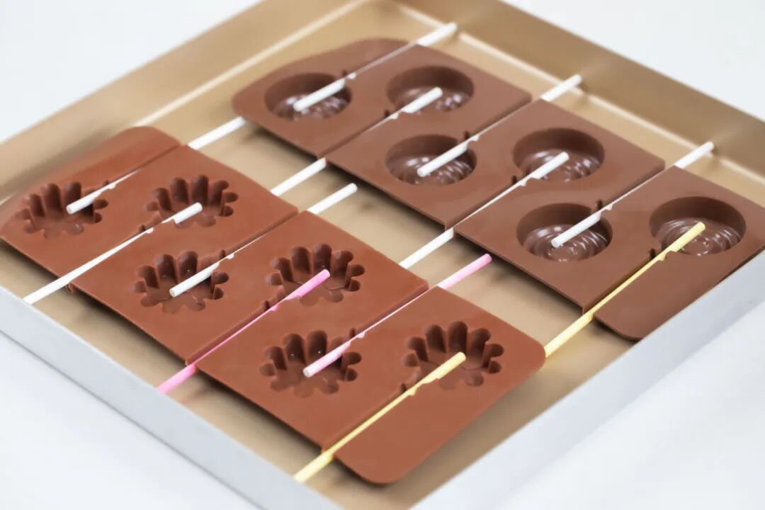 1、先做准备工作,将纸棒插入棒棒糖硅胶模具中待用。