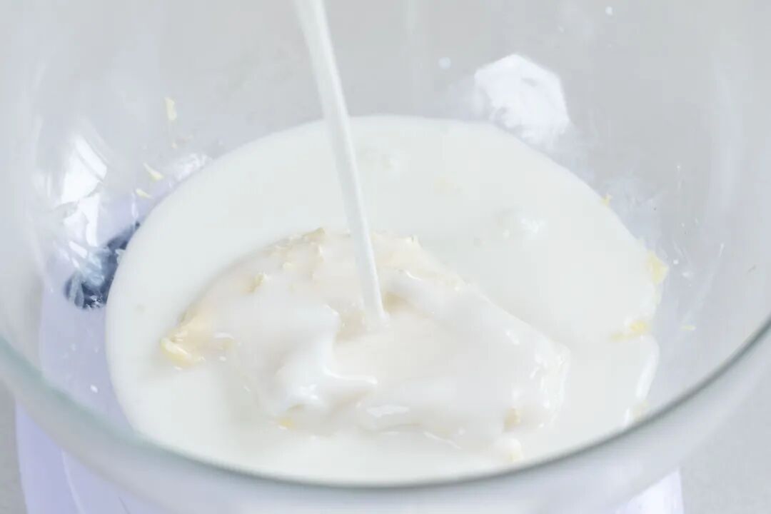 8、坐热水一边搅拌均匀,一边加热到50℃取出。
