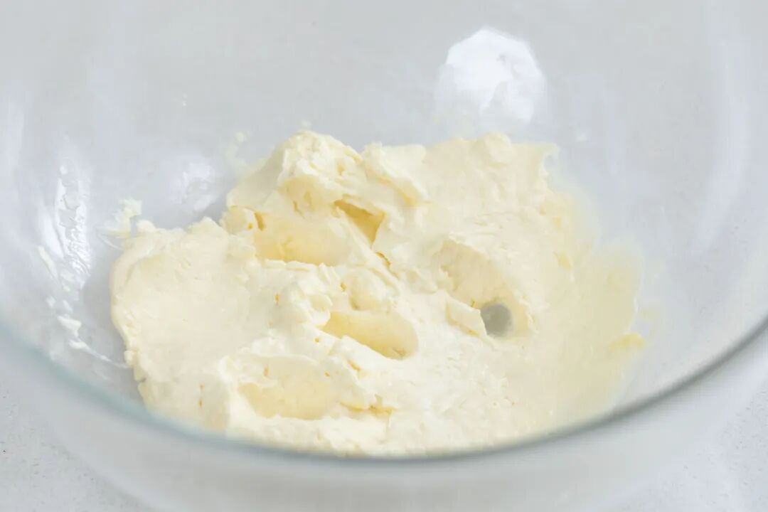 3、60g奶油奶酪提前2小时取出室温软化至可以轻松压扁的程度。
