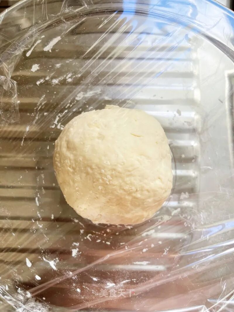 3. 和成面团,不光滑没关系,盖上保鲜膜醒15分钟,就能揉光滑了。