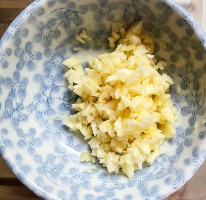 5. 煮面条期间,来切点蒜末。