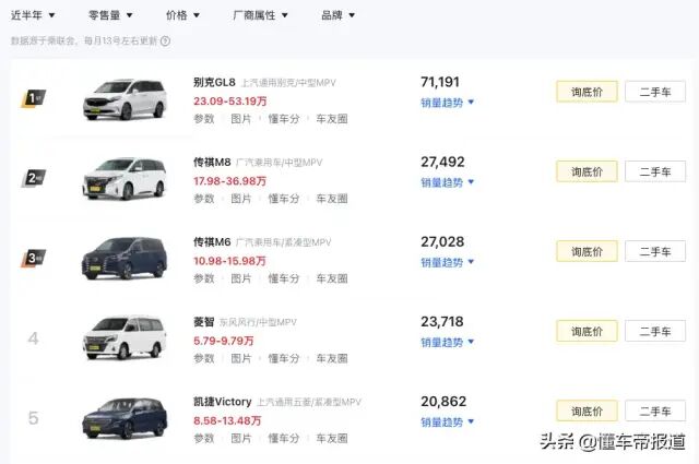 传祺M8一直以来都是国内销量最好的自主品牌MPV车型,过去半年销量接近3万辆,而同级别荣威iMAX8、上汽大通G20等车型同期销量与M8有明显差距。而改款之后除了外观内饰设计升级之外,配置大概率也会同步提升,所以新车的产品力会更加出色。据悉,全新传祺M8将于今年四季度上市,更多消息懂车帝也将持续关注。