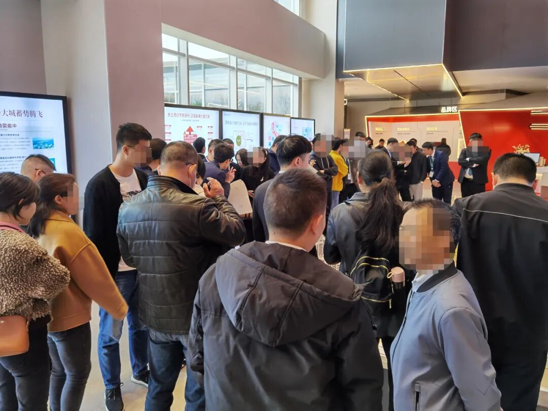 我来到售楼部,只见门前停满了车,看来工作日看房的人也很多。沙盘旁,置业顾问正热情地向购房者介绍项目;