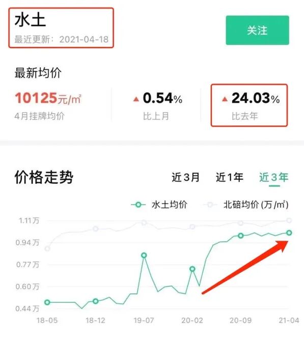 结果现在土拍一刺激,水土的房价已经“山鸡变凤凰”,同比去年上涨了约24.03%!