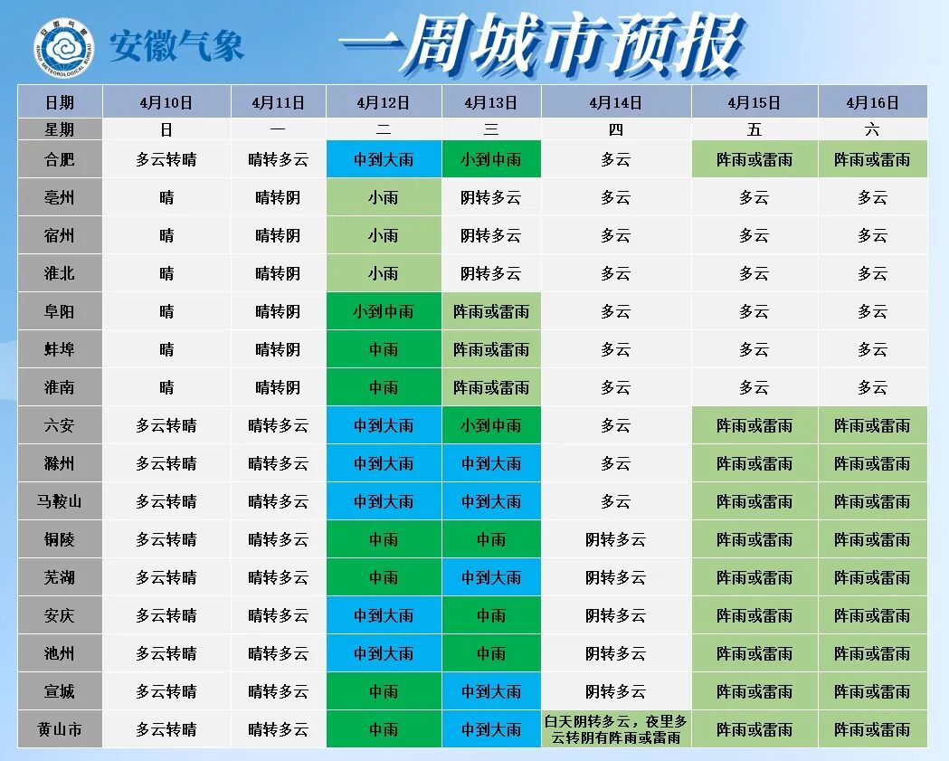 【欢迎点击音频,收听语音版“早读安徽”】天气预报