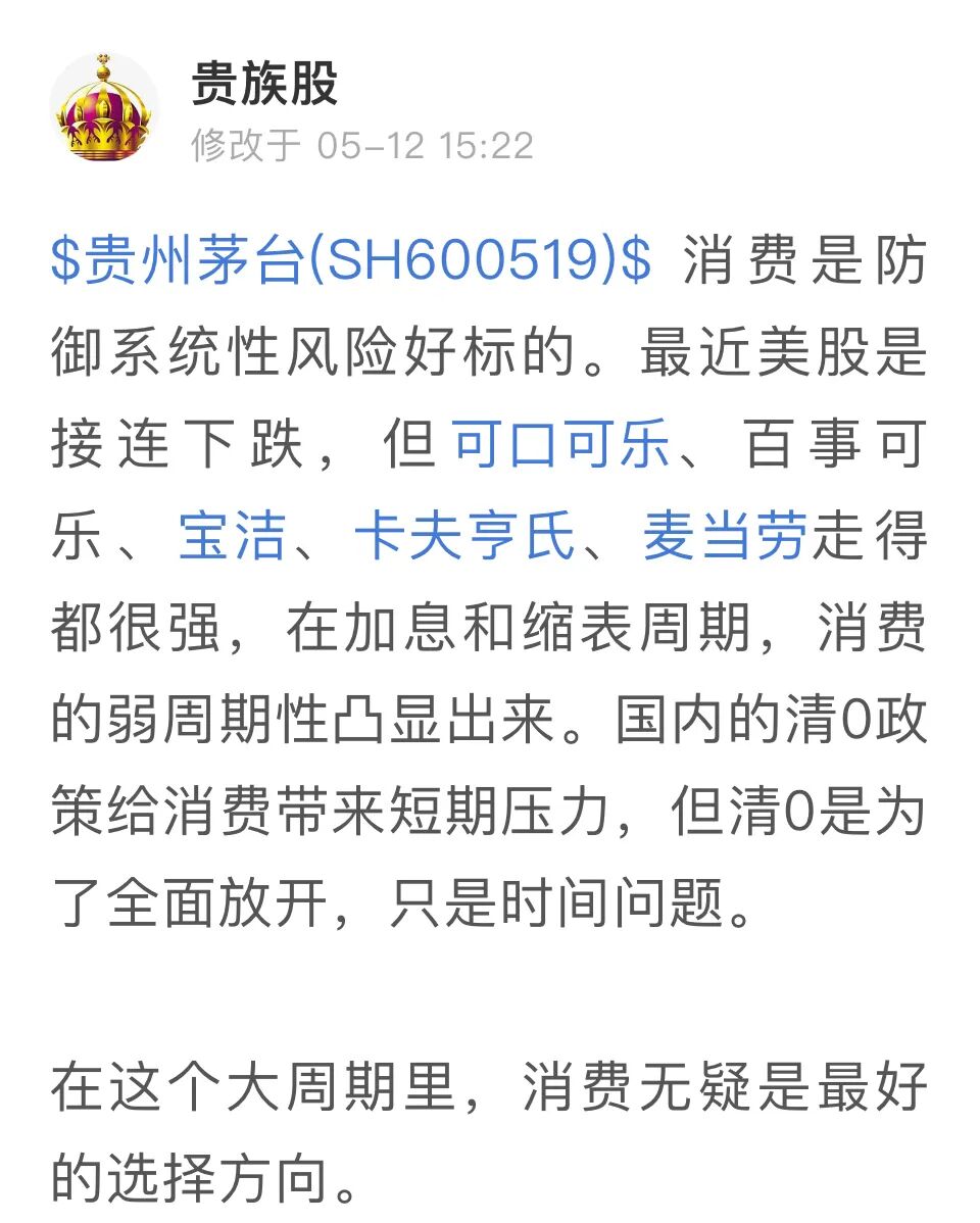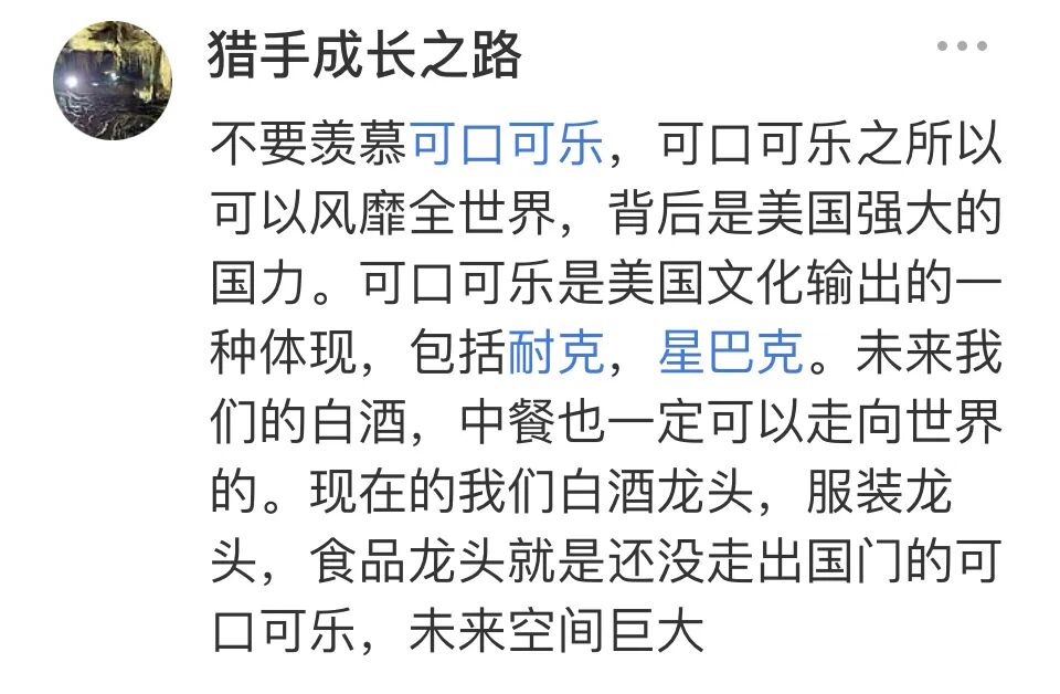 全球化策略,爆炸式的速度迅猛增长可口可乐在过去一百年的时间里上涨50万倍,堪称财富的奇迹,其成长性很大程度上得益于其全球化的策略。80年代中期,可口可乐专心开拓国外市场:1980年,可口可乐销售额近60亿美元,利润达到4.22亿美元,是1962年的十倍,其中65%的利润来源于海外部门。1982年,可口可乐国际市场的销售量占公司全部软饮产量的62%。1986年可口可乐公司年平均纯利润率达到10%,股价上升至120美元。到1987年(巴菲特投资之前的一年),公司利润的75%来自海外市场。到了1996年年底,可口可乐公司销售量占据了海外软饮料市场的一半以上美国作家汤姆·斯丹迪奇所言:「可口可乐是20世纪当之无愧的饮料代表,它见证了美国的崛起、资本主义的兴盛以及全球化的发展。」巴菲特都忍不住感概说:“当我观察到情况明晰而且让人心驰神往……世界上最流行的产品又为自己建立了一座新的里程碑,它在海外的销量正以爆炸式的速度迅猛增长。” 可口可乐的业务简单易懂,然而评价可口可乐却并不容易,即使巴菲特这样极具投资天赋的人也承认“用了20年才明白买好企业的重要性”。寻找可口可乐这样的企业需要投资经验的积累,也需要投资者的主观能动性。04雪球后记,在A股寻找“可口可乐”?在A股,有哪些公司具备像过去的可口可乐一样的成长性呢?雪球用户@贵族股表示:消费是防御系统性风险最好的标的,在加息和缩表周期,消费股的弱周期性就会凸显出来。