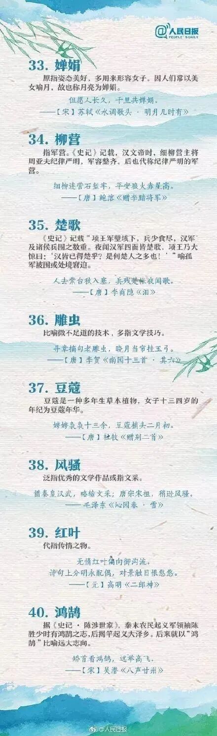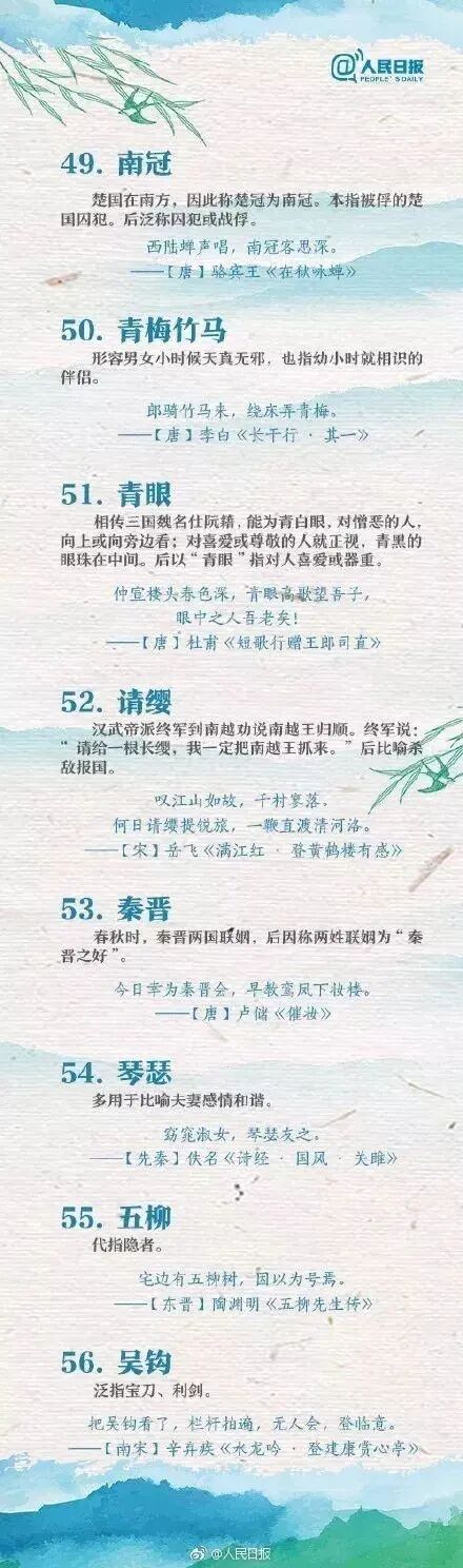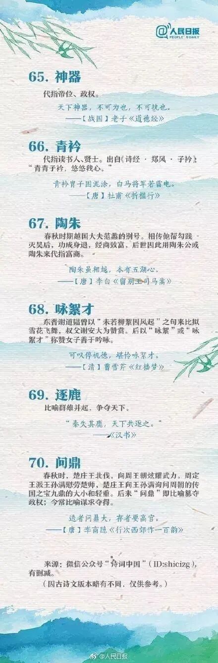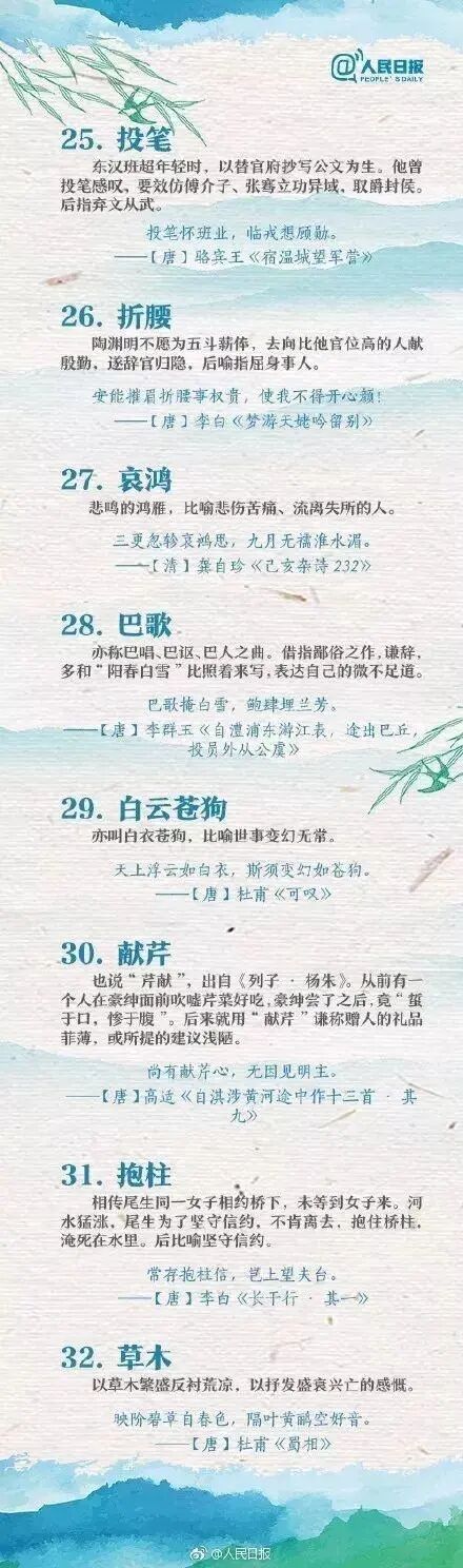 人民日报整理的70个古诗词中常见的文化典故,中学生必看!