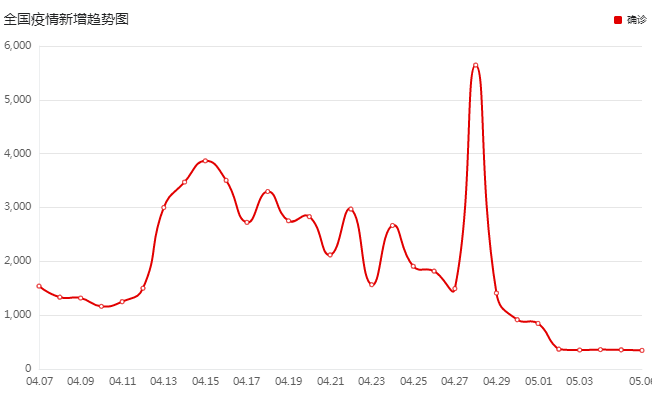 5月6日,股市又大跌了……但我坚信,这是黎明前的黑暗。道理很简单,中国的新冠疫情正在减轻。下图是每日新增趋势图,截止到5月6日。