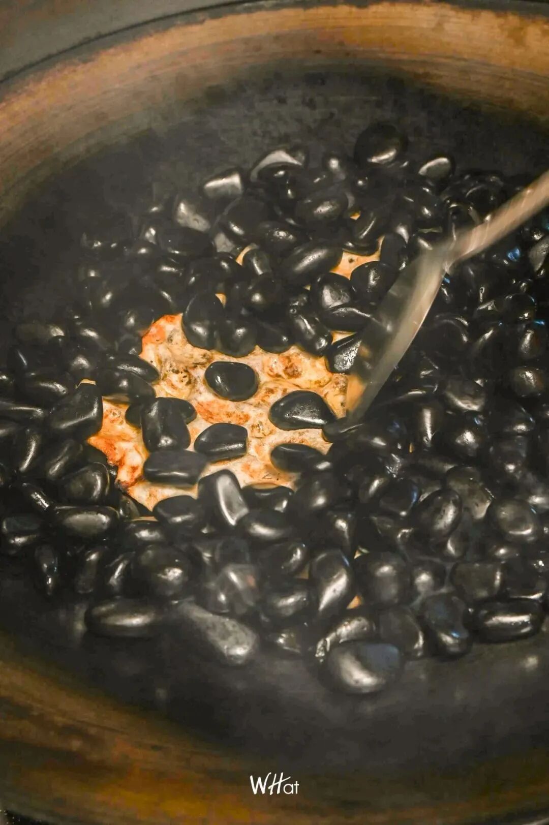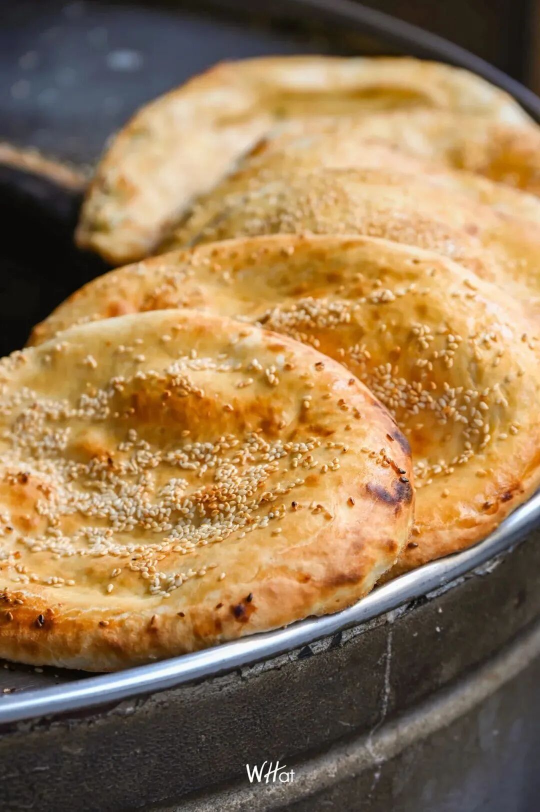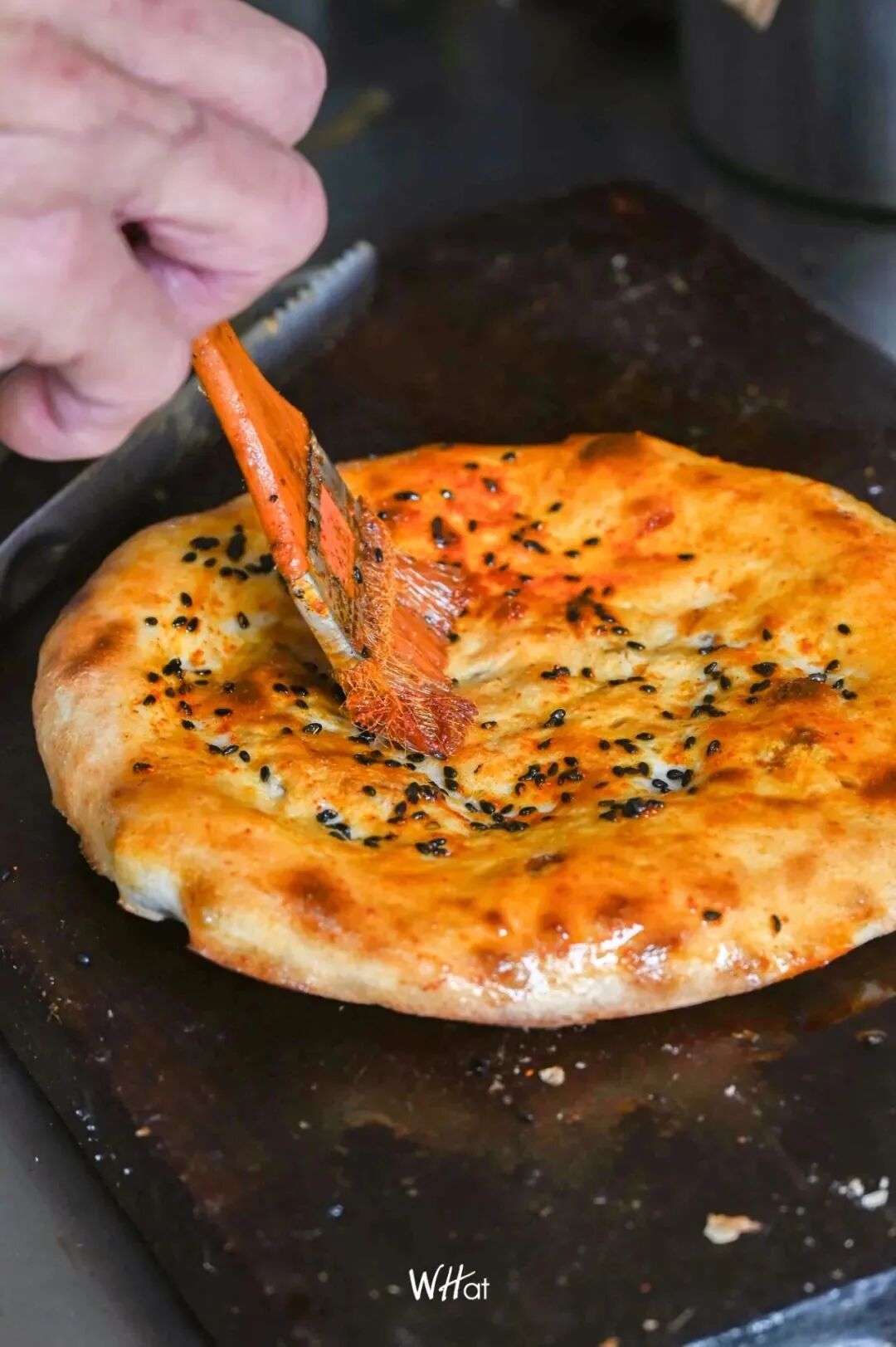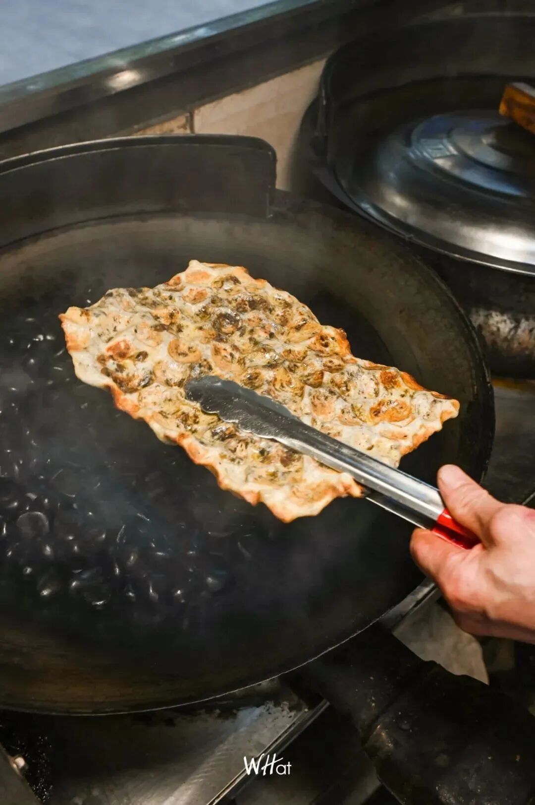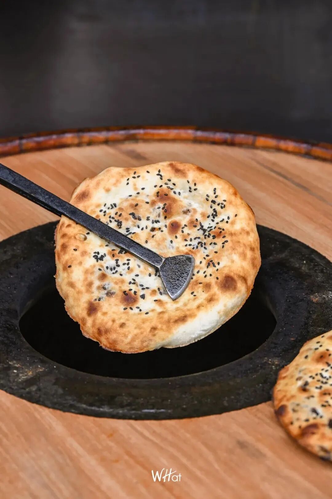 得益于石头传热慢、散热慢的特性,被埋在其中的饼胚受热均匀,每一口都保持着同样的韧劲儿和脆劲儿。
