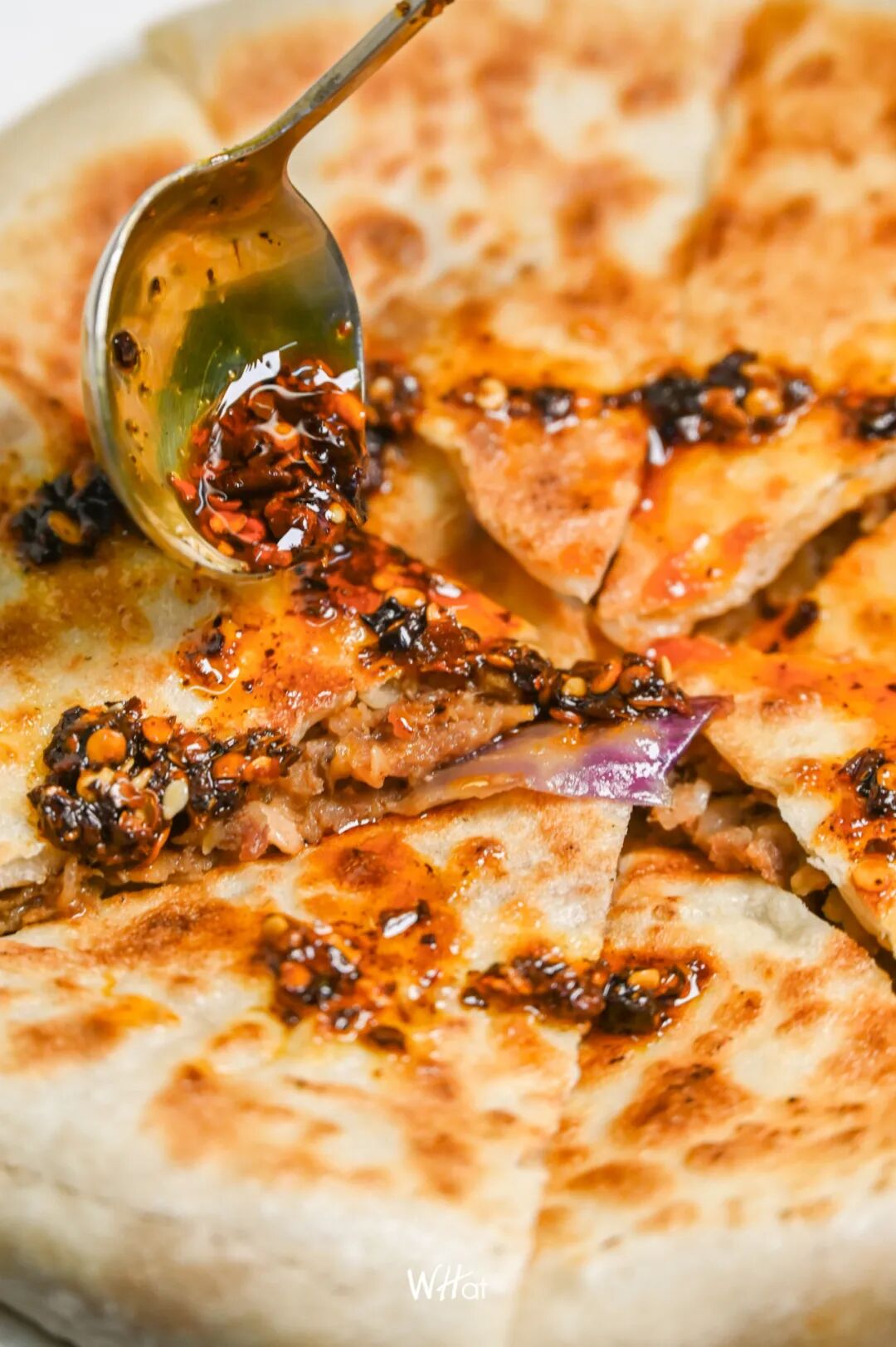 只选用细嫩的后腿肉调馅,面饼反复卷起再擀平,烙到两面金黄切开,鲜明层次的秘密连同丰盈汁水,齐齐登上餐桌。