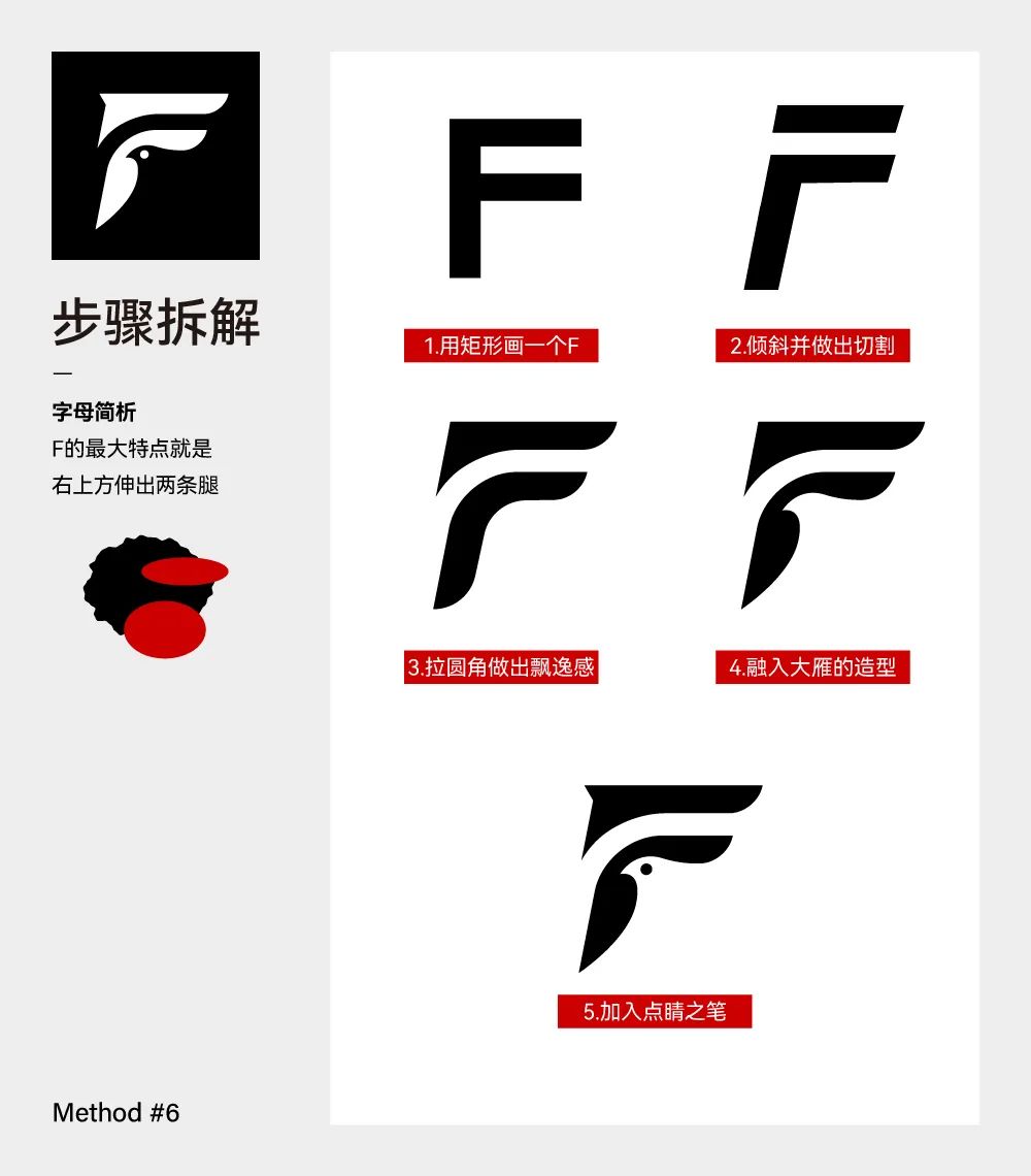 那还有一种方法就是先画出字母的结构,然后利用负形部分就行结合,我们试一下 F。