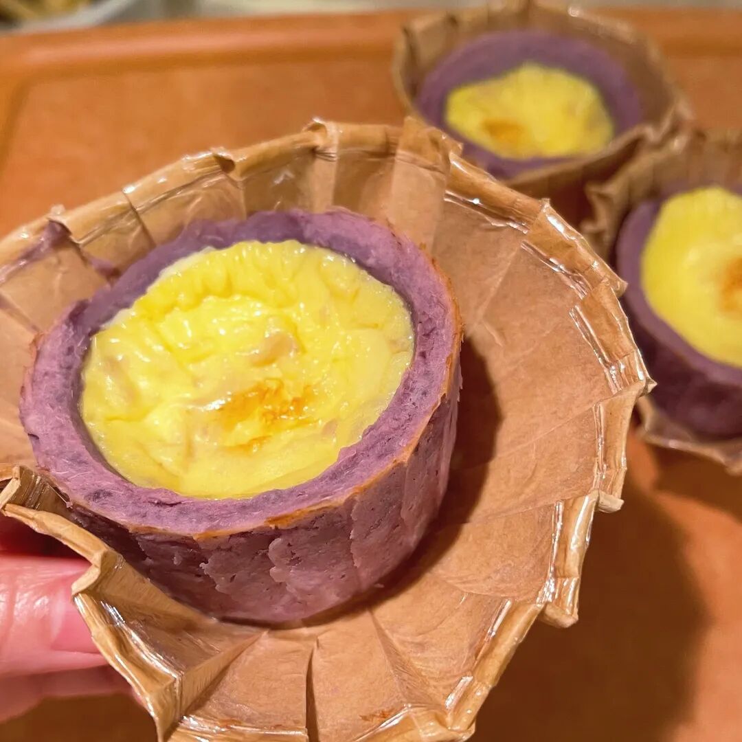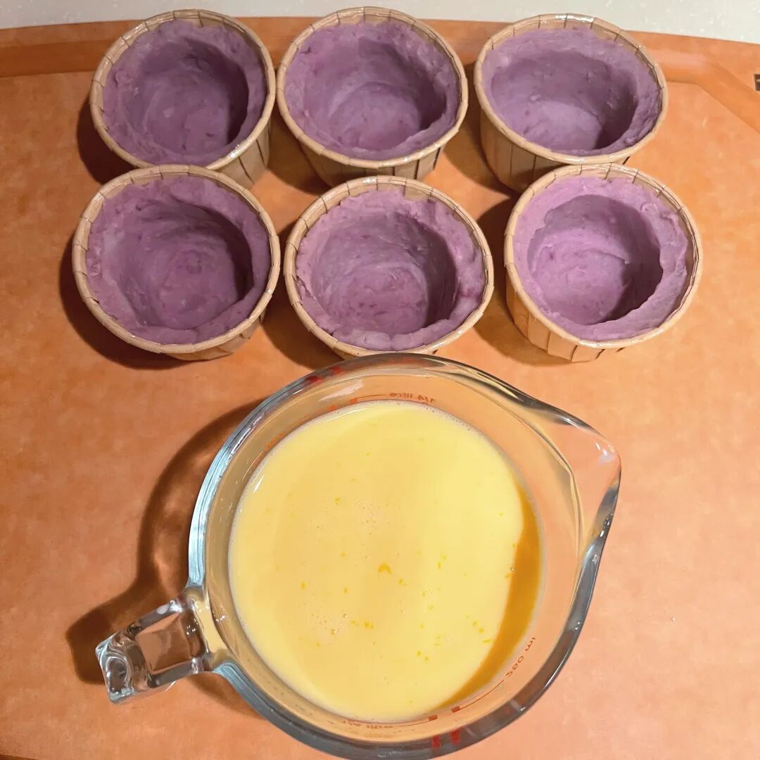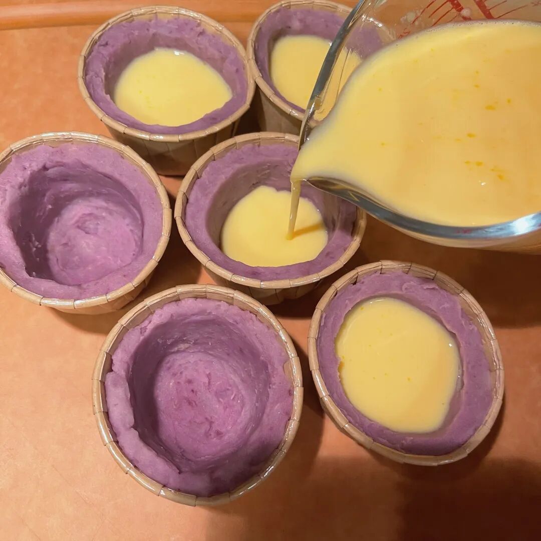 蛋挞皮部分:荔浦芋头250g、紫薯几块增色、代糖15g