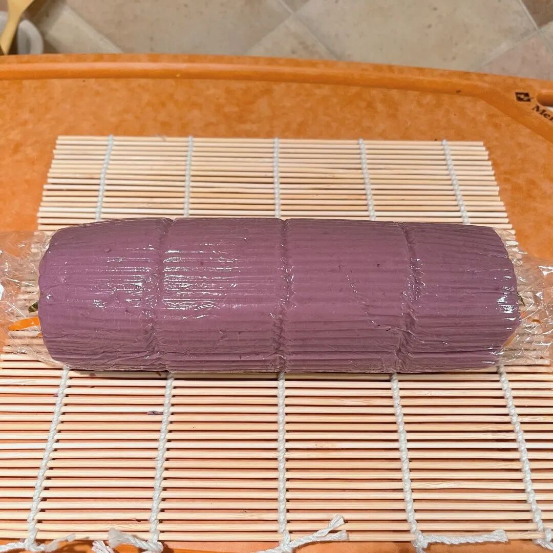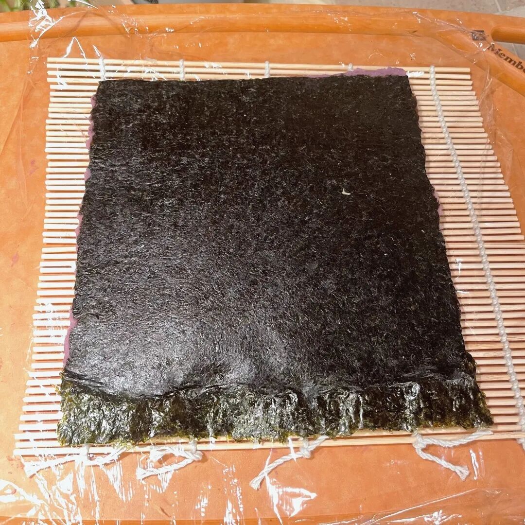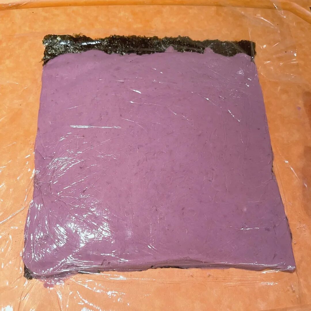 (不太会卷的话也可以正着卷,就是把芋泥当成米饭,海苔还在外面那样,会更简单一点~)