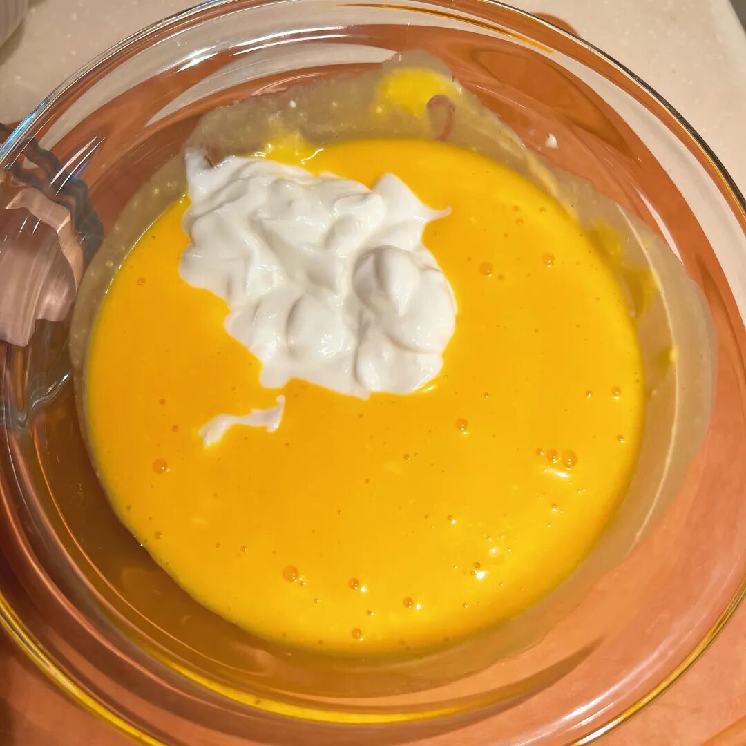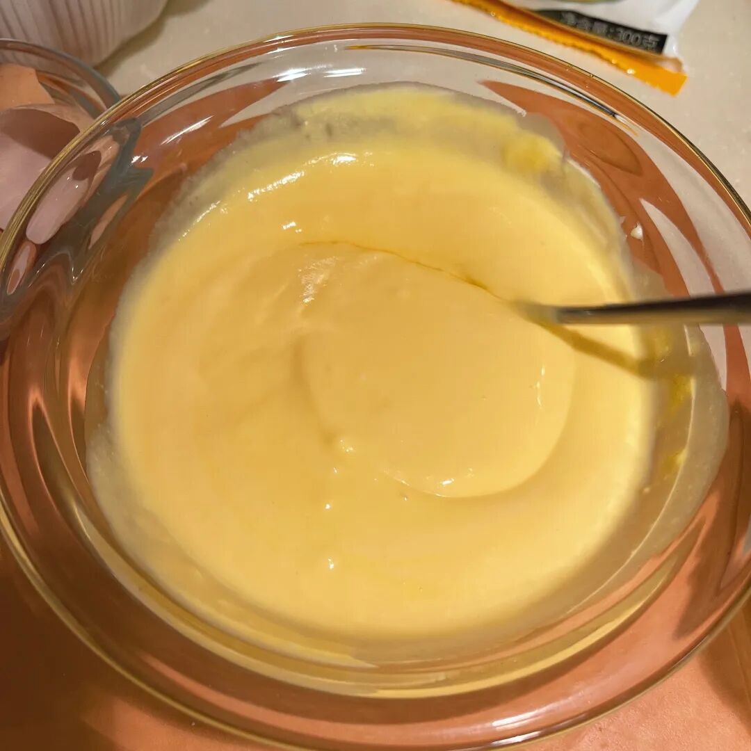 4、加入180g浓稠酸奶搅拌均匀。(如果酸奶是甜的话糖量减少)